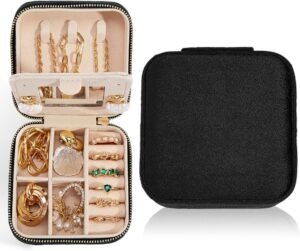 Travel Velvet Jewelry Box with Mirror, Mini Gifts Case for Women Girls, Small Portable Organizer Boxes for Rings Earrings Necklaces Bracelets (Black)